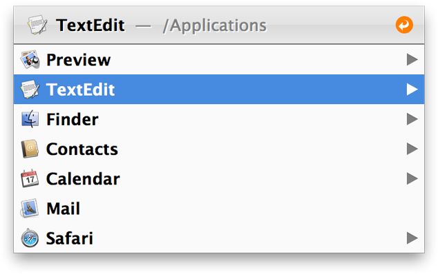 LaunchBar’s built-in application switcher allows you to quickly switch between currently running applications.